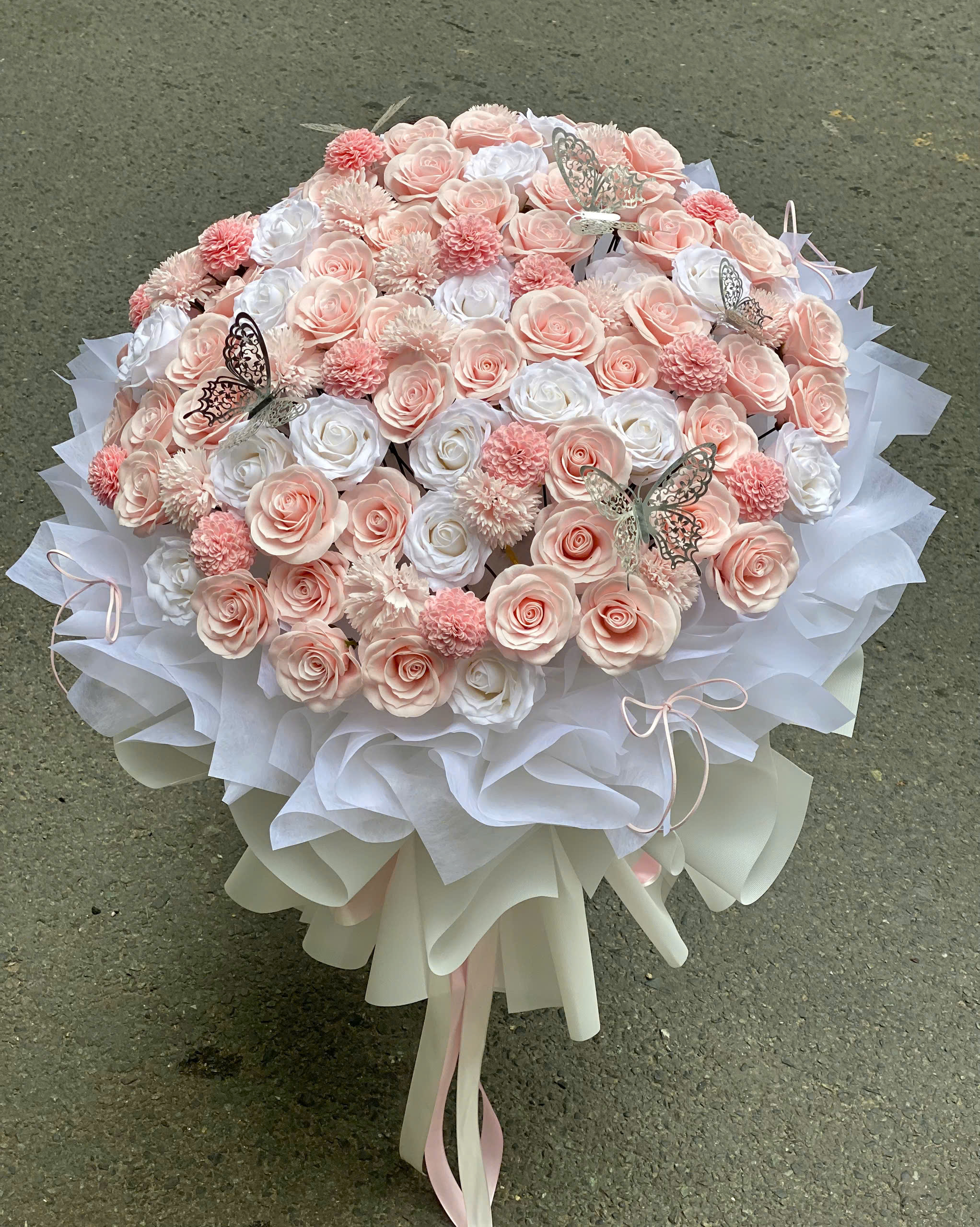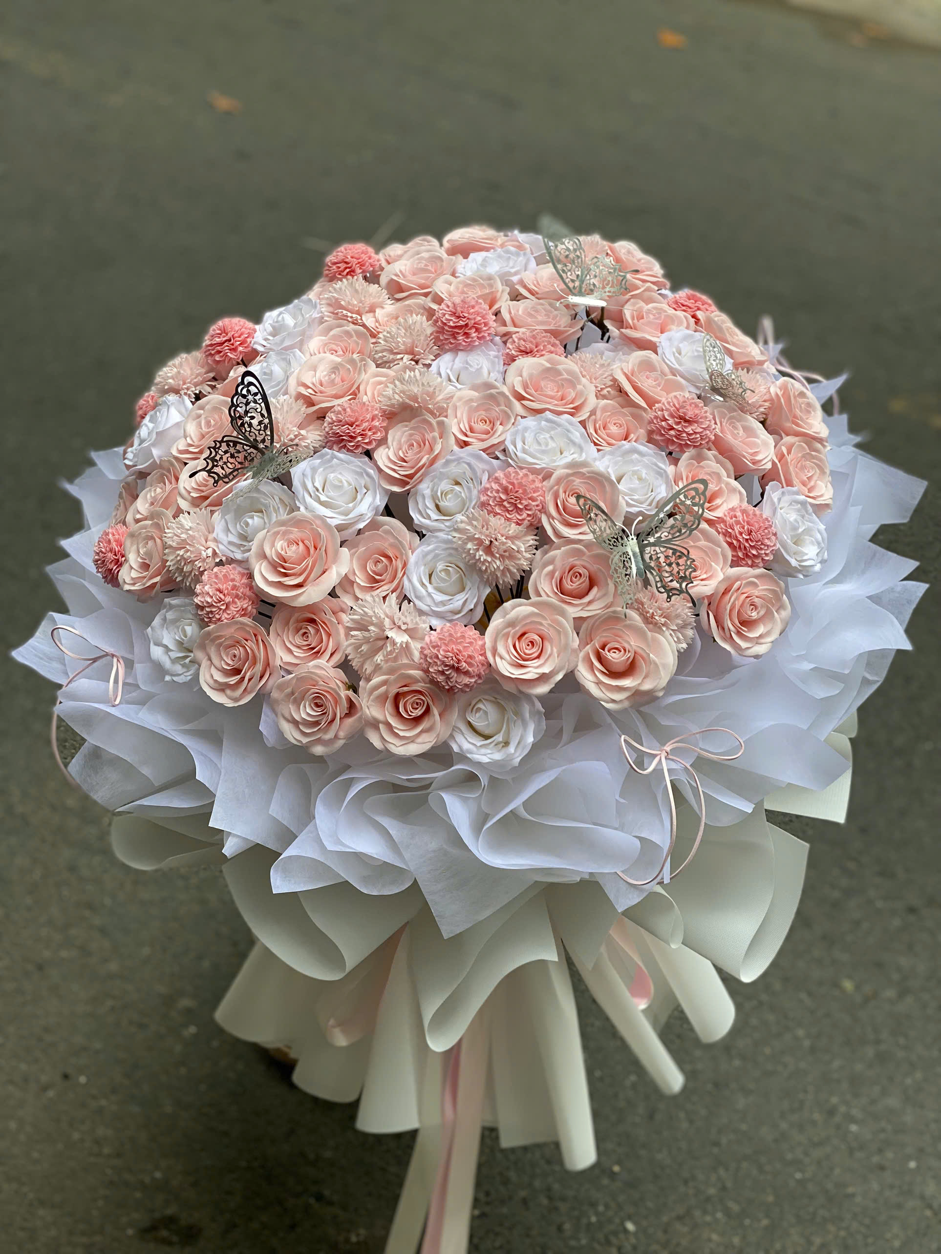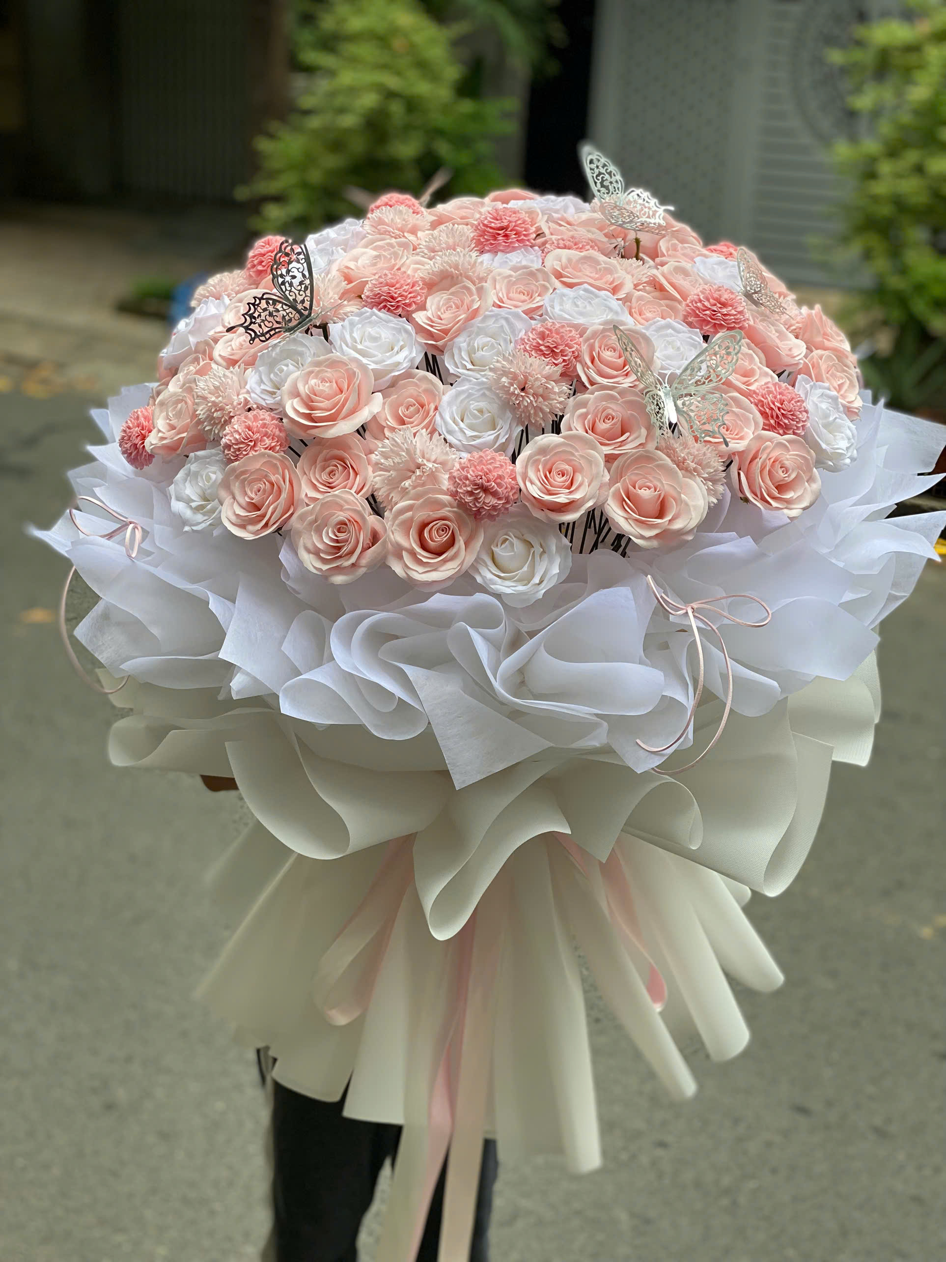 Bó hoa sáp mix lụa tone Xanh Navy - MS910