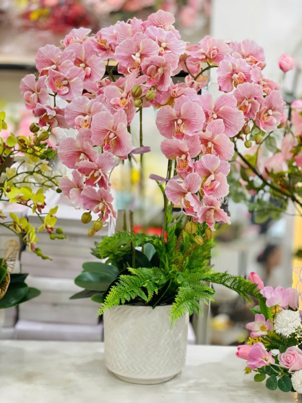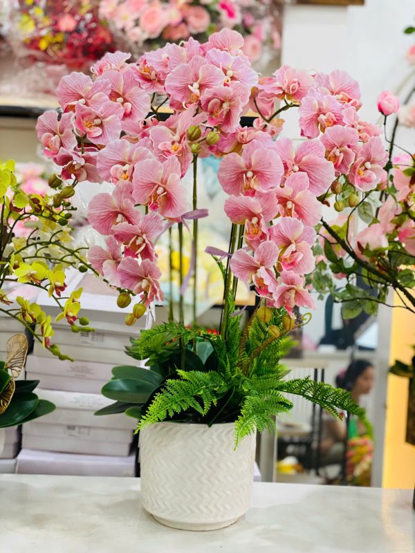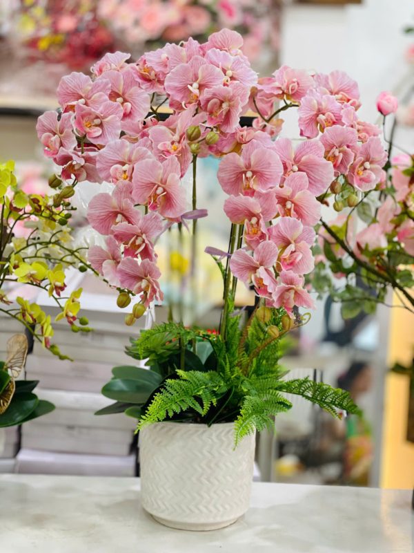Chậu hồ điệp GIẢ 5 cành – Màu Xoăn Hồng Thanh Lịch & Tinh Tế