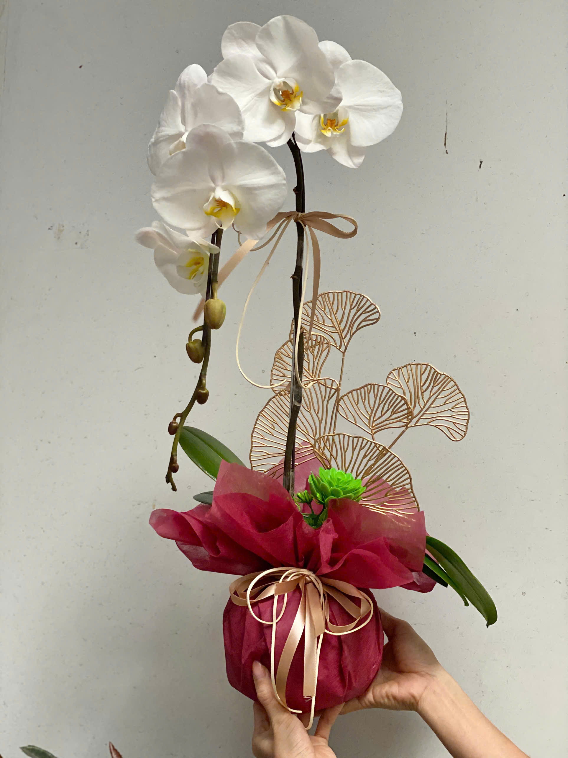 Số cành có thể thay đổi thêm hay bớt theo ý khách hàng. Nếu 1 cành chậu sẽ có giá 350k. Nếu từ 2 cành trở lên chậu sẽ được tính giá: Số cành x 250k. Giá trên đã bao gồm chậu sứ, áp dụng cho tất cả các màu.
