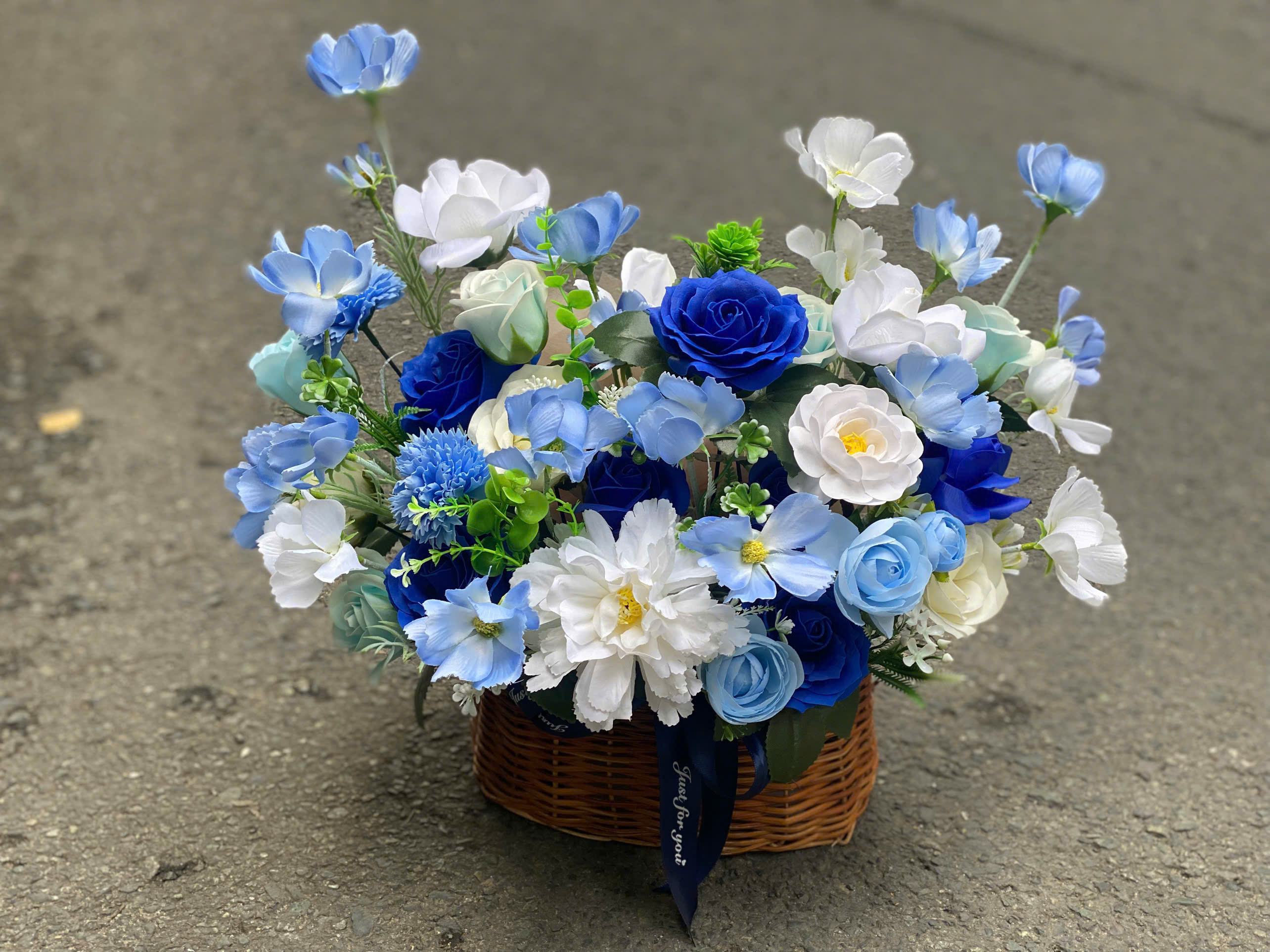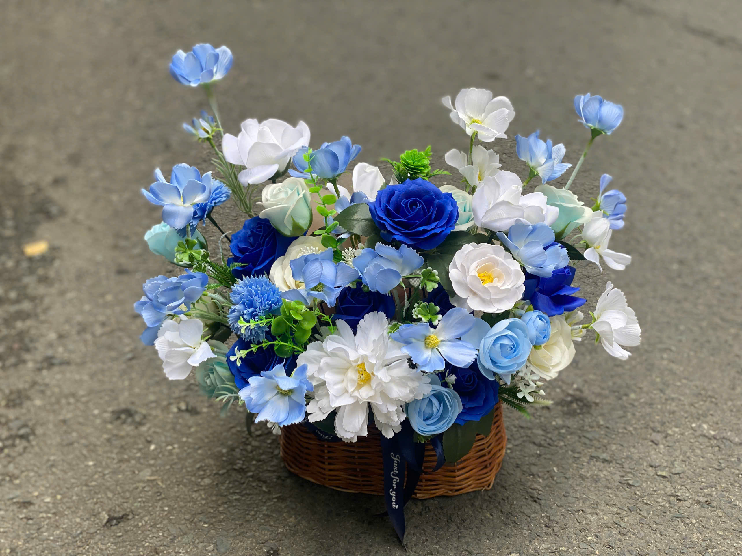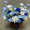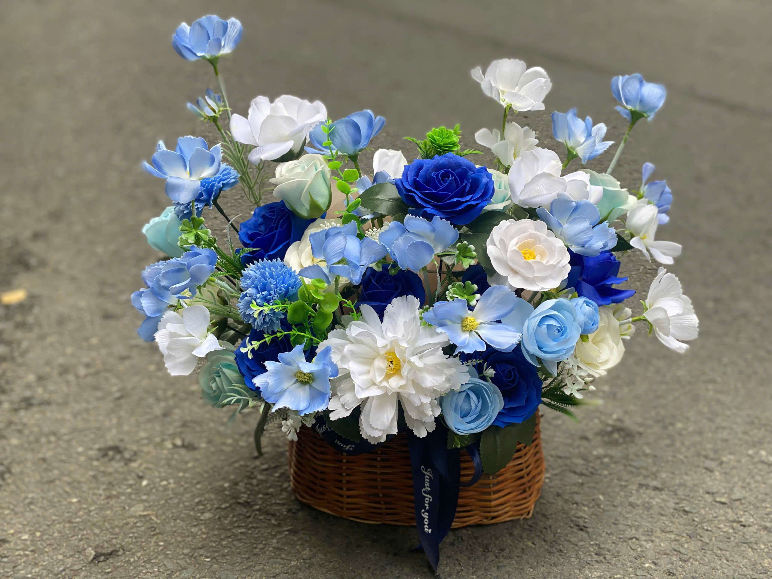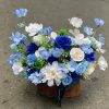 Giỏ Hoa Lụa Kết Hợp Hoa Sáp Tone Xanh Trắng MS988