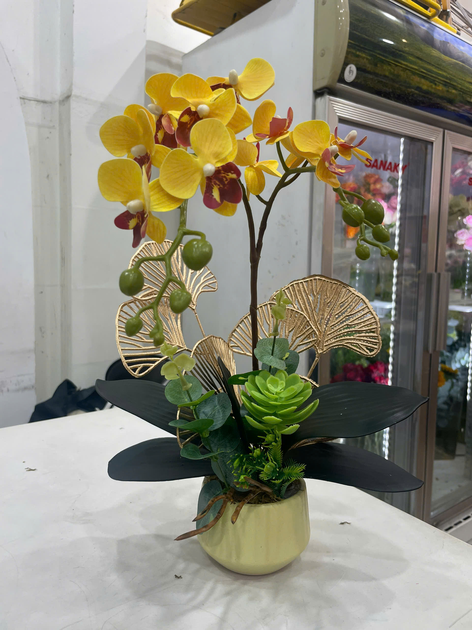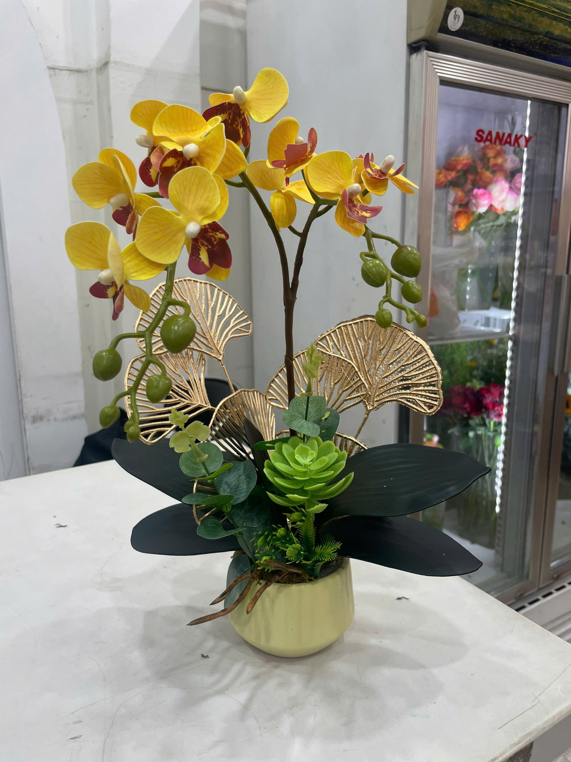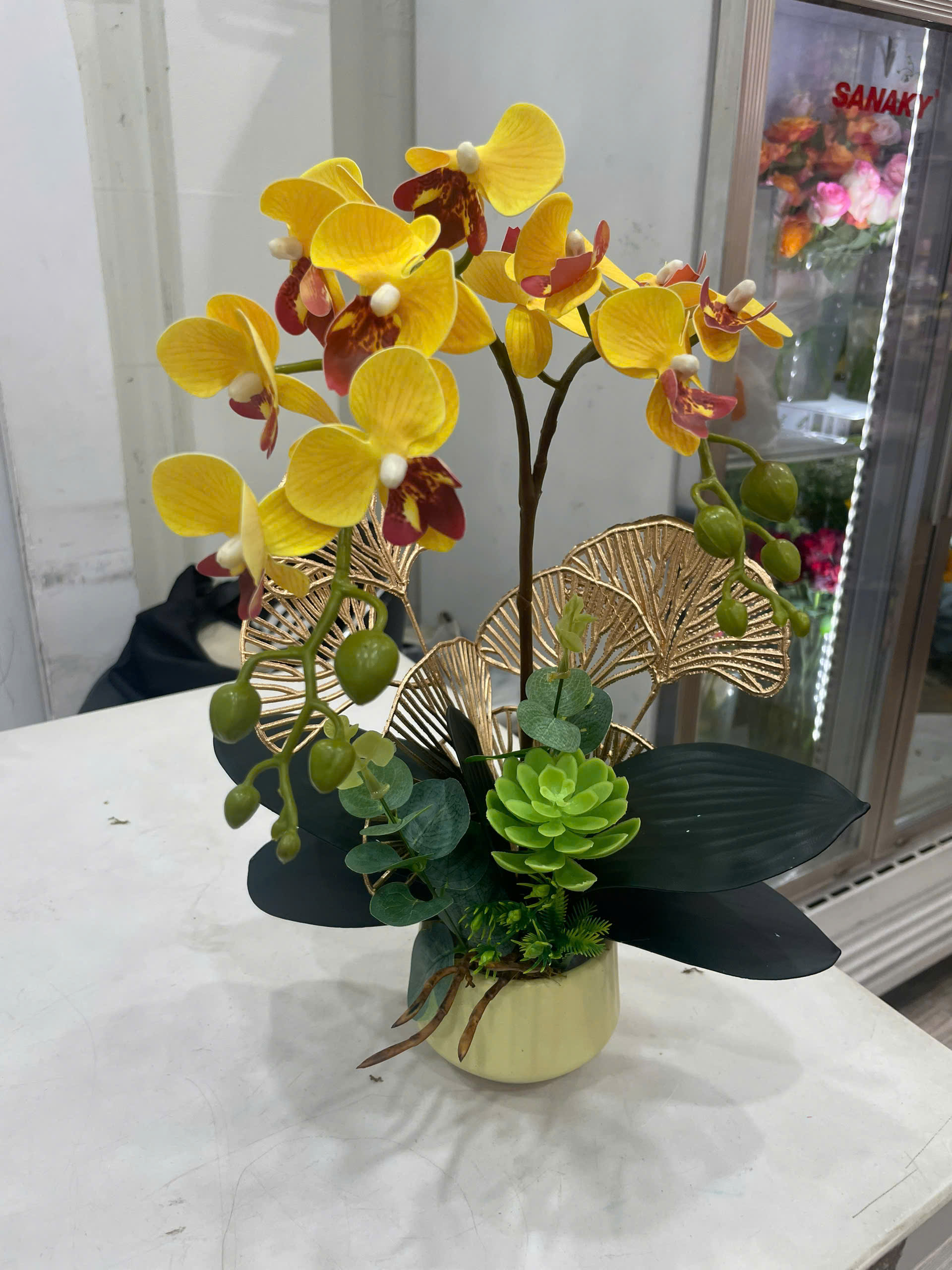 [HOA GIẢ] Chậu hồ điệp mini – 1 cành mini (màu chậu ngẫu nhiên) – HDG02