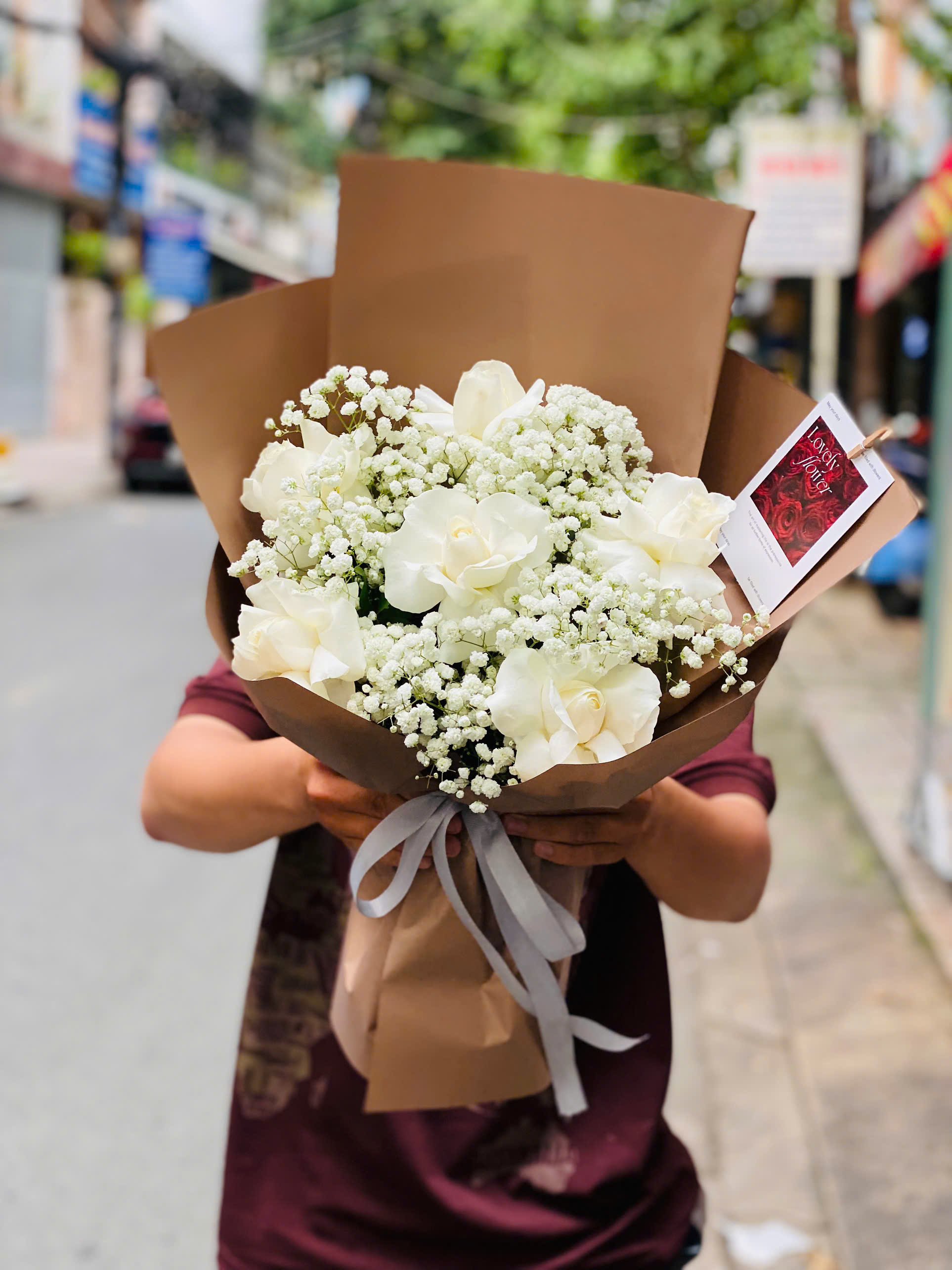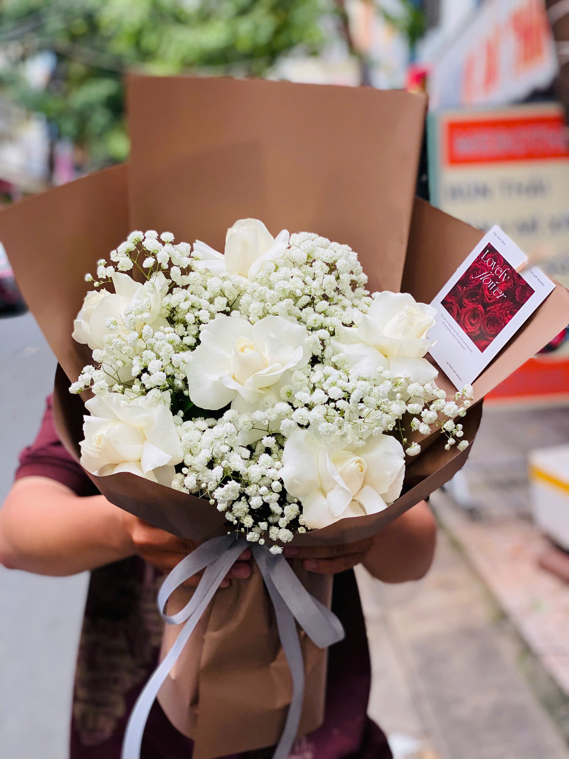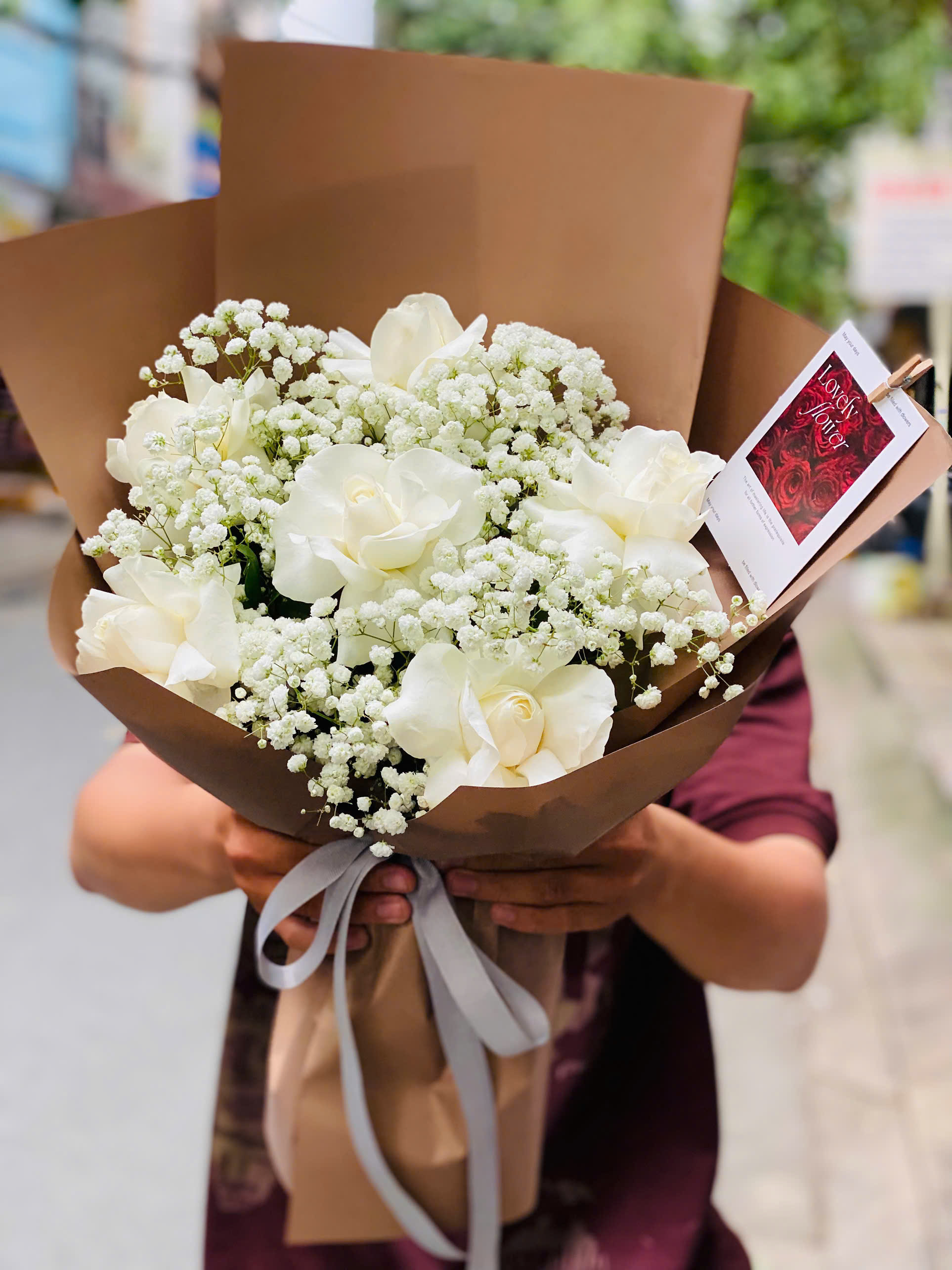 Bó hoa tươi “White Roses” là sự kết hợp tinh tế của Hoa Hồng Trắng O’Hara quý phái, Hoa Baby nhẹ nhàng và những chi tiết nhỏ như Giấy và Nơ, tạo nên một vẻ đẹp tinh khiết và sang trọng. Hoa Hồng Trắng mang đến sự quý giá và đẳng cấp, trong khi Hoa Baby và các chi tiết nhỏ như Giấy và Nơ thêm vào sự nhẹ nhàng và lãng mạn cho bó hoa. “White Roses” là lựa chọn hoàn hảo để biểu thị sự tôn trọng và tình cảm đặc biệt.